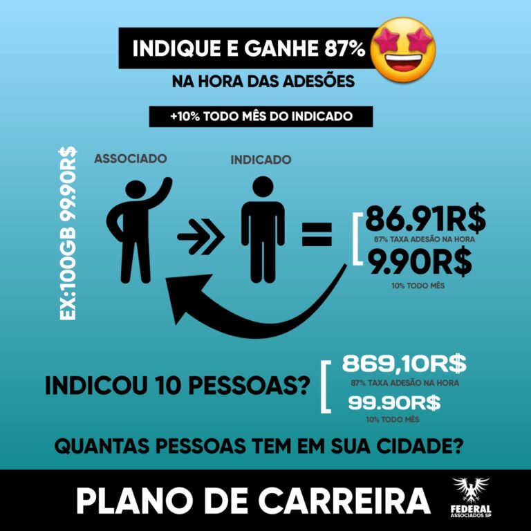 A cada amigo ou familiar que você indicar e que se tornar um associado, você ganha 10% de cada indicação mensalmente, podendo zerar sua mensalidade. Para indicar, basta compartilhar seu link de associado.